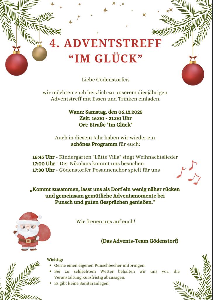 Am Nikolaustag gibt es wieder den beliebten „Adventstreff“ in Gödenstorf .
