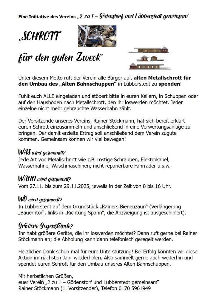 Wir würden uns nach wie vor sehr über Unterstützung und Mitgliedschaft im Verein und im Bahnhofsschuppen-Projekt freuen, da es ein Verein für die Gemeinschaft der beiden Dörfer ist. Verbreitet die Info auch gern weiter.